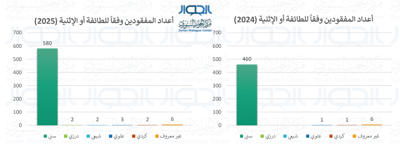 الشكل 5: أعداد المفقودين بين عامي 2024-2025 وفقاً للطائفة أو الإثنية