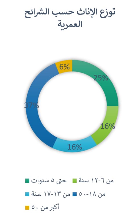 | عدد الإناث | 328292 | 125537 | 453829 |