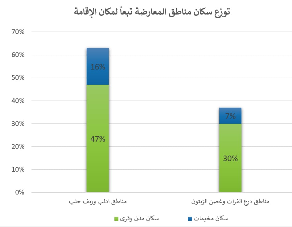 الشكل 2 : توزع السكان في مناطق سيطرة المعارضة وفقاً لمكان الإقامة