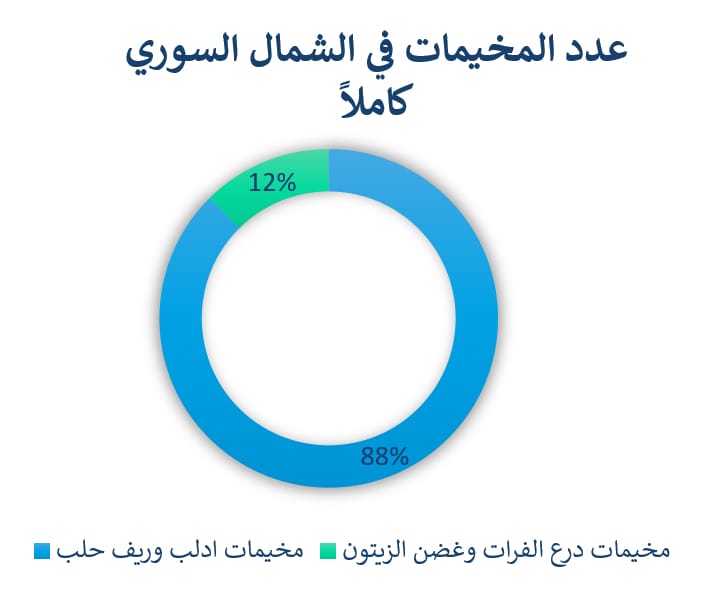 | مخيمات إدلب وريف حلب[15] | مخيمات درع الفرات وغصن الزيتون[16] | المخيمات الكلية[17] |