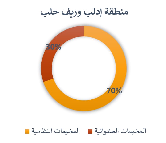 وتشكل المخيمات العشوائية قرابة 30% من إجمالي عدد المخيمات في منطقة إدلب وريف حلب (الشكل 5)، بينما تشكل قرابة 32% من إجمالي عدد المخيمات في منطقة درع الفرات وغصن الزيتون (الشكل 6)