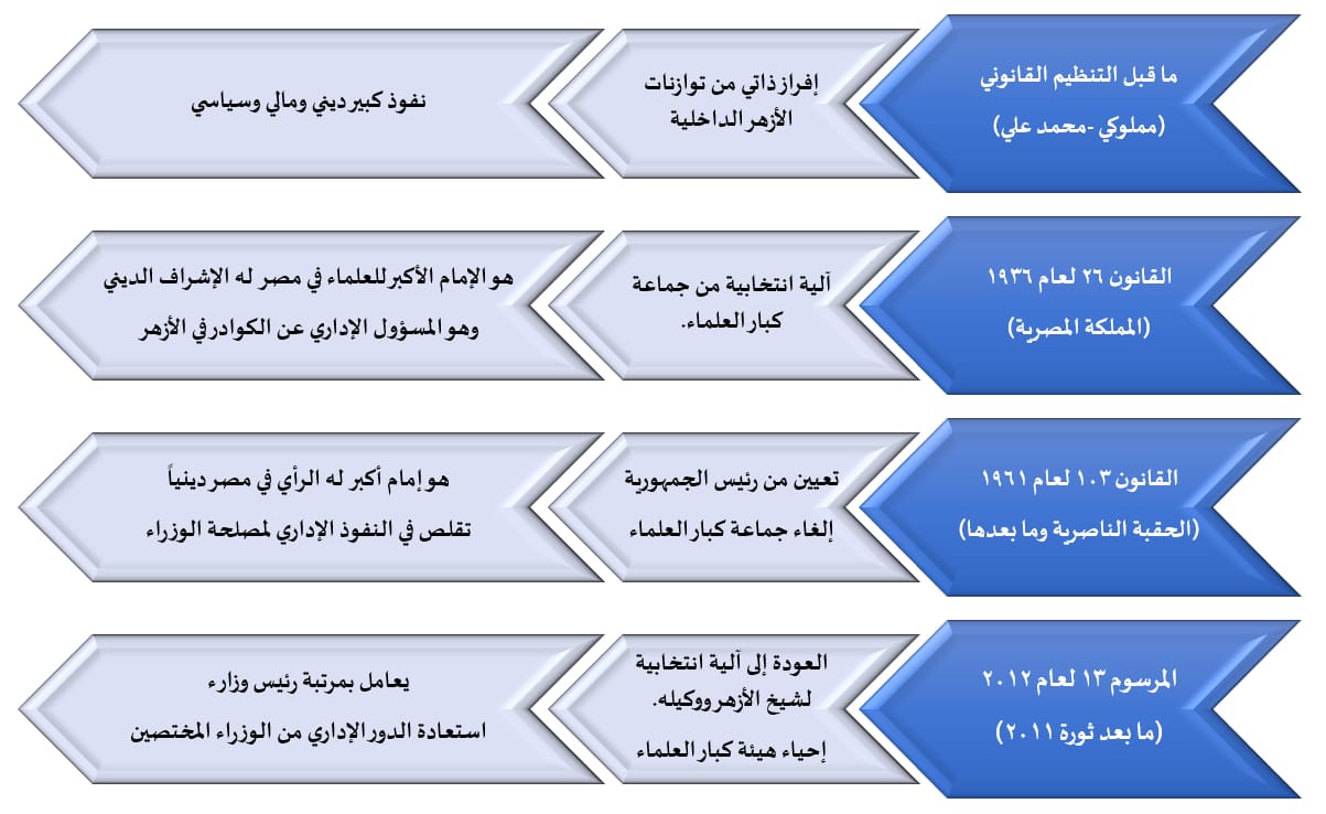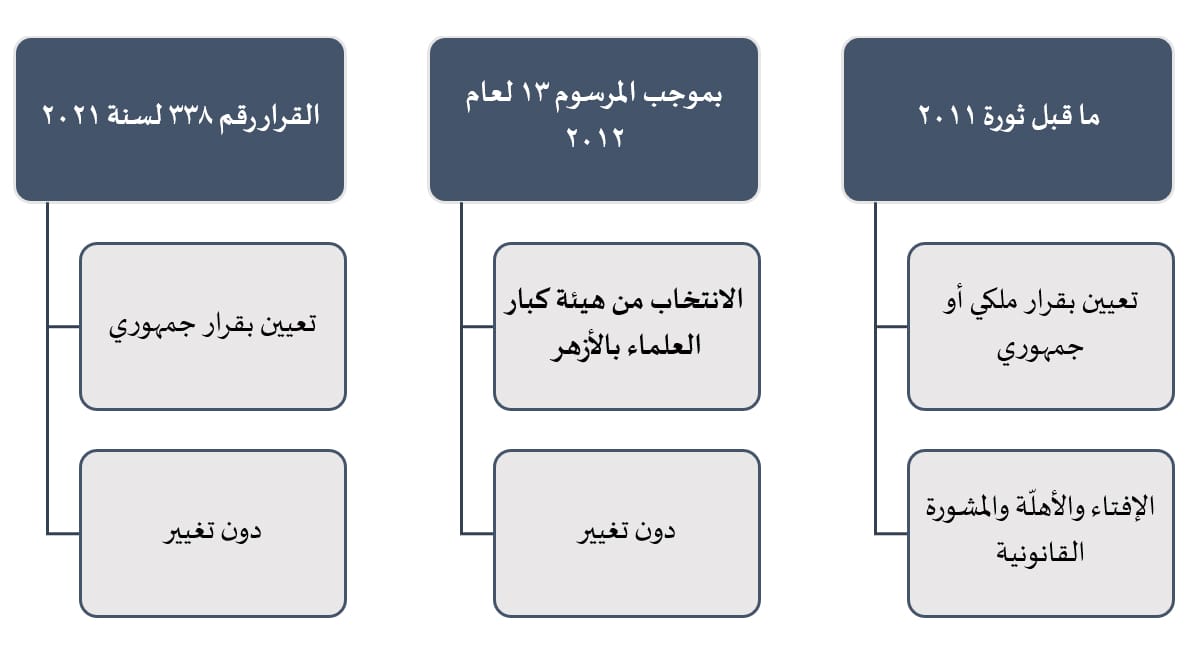 شكل رقم /1/ يظهر التغييرات على آلية اختيار شيخ الأزهر وصلاحياته