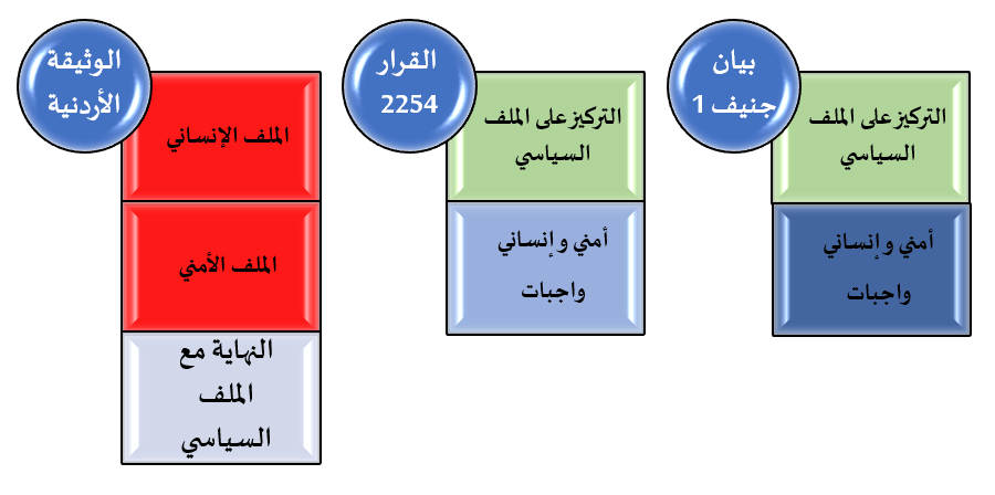 رسم توضيحي يبين كيفية التعاطي مع الملفات الأمنية والإنسانية والسياسية