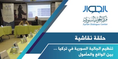 أقام مركز الحوار السوري ضمن برنامجه للحوار المجتمعي حلقة نقاش تحت عنوان " تنظيم الجالية السورية في تركيا بين الواقع…