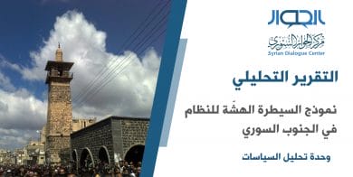 التقرير التحليلي “نموذج السيطرة الهشّة للنظام في الجنوب السوري: تجليات فقدان نموذج الدولة شكلاً ومضموناً، وتضارب أجندات الحلفاء والفاعلين”